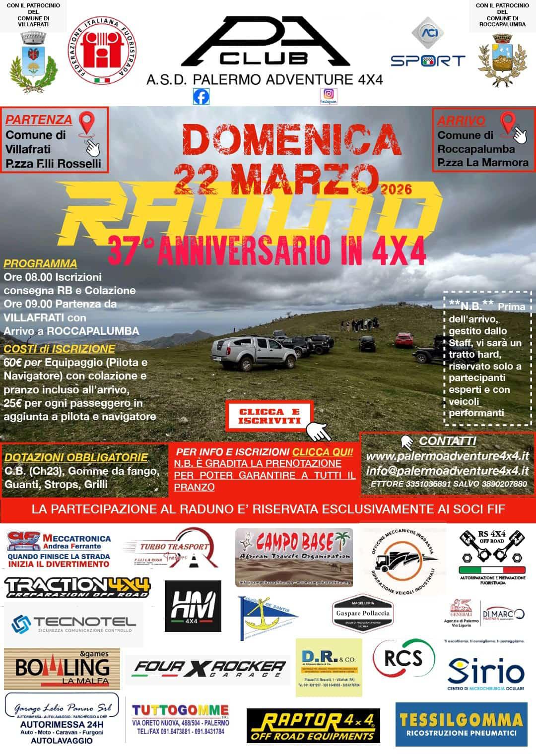 L’Associazione Palermo Adventure 4x4, costituita nel febbraio del 1989, dall’iniziativa di alcuni appassionati fuoristradisti, sin dal 1991 ha indirizzato le sue attenzioni nel settore del Volontariato e specificatamente in quello di Protezione Civile. Infatti nello stesso 1991 esordiva partecipando alla sua prima esercitazione, svoltasi in Emilia Romagna località Camposanto, promossa dalla G.E.S.P.M. gruppo emergenza soccorso della provincia di Modena.